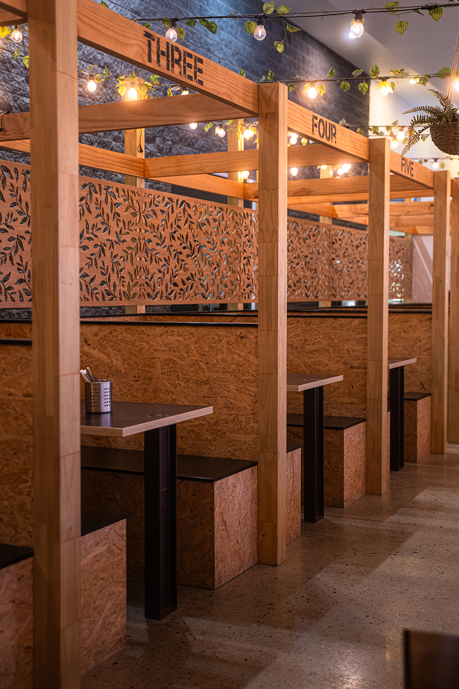 This area also features 15 booth seats as part of the dine-in experience, each booth seating up to six people, offering 90 additional seats on top of the main dining capacity. These booths create a semi-private dining feel that’s perfect for small to mid-size families. Seven of the booths even have direct views of the playground, making them a favourite for parents wanting to keep an eye on their little ones while enjoying their meal.
