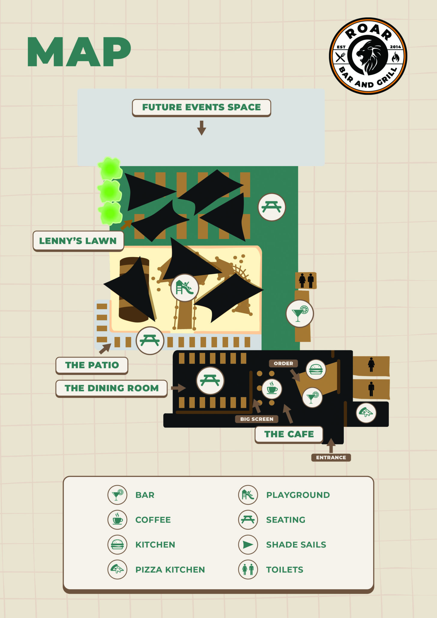 The Dining Room at ROAR Bar & Grill Bibra Lake offers a warm, relaxed indoor space perfect for families, groups, and local diners. With comfy seating and a quieter atmosphere, it’s ideal for casual lunches, easy dinners, or catching up with friends while the kids play in a dedicated playground area.